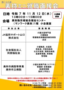 美祢市内の介護医療福祉分野で活躍中の事業所から3社お越しいただきます。